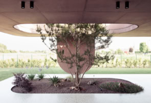 Elemento distintivo del progetto è la copertura piana continua, che unifica tutti gli ambienti della casa sotto un unico segno architettonico. Al suo interno si aprono pozzi di luce vegetati, veri e propri giardini interni che portano luce naturale e verde all’interno dell’abitazione, rafforzando il legame tra architettura e paesaggio.