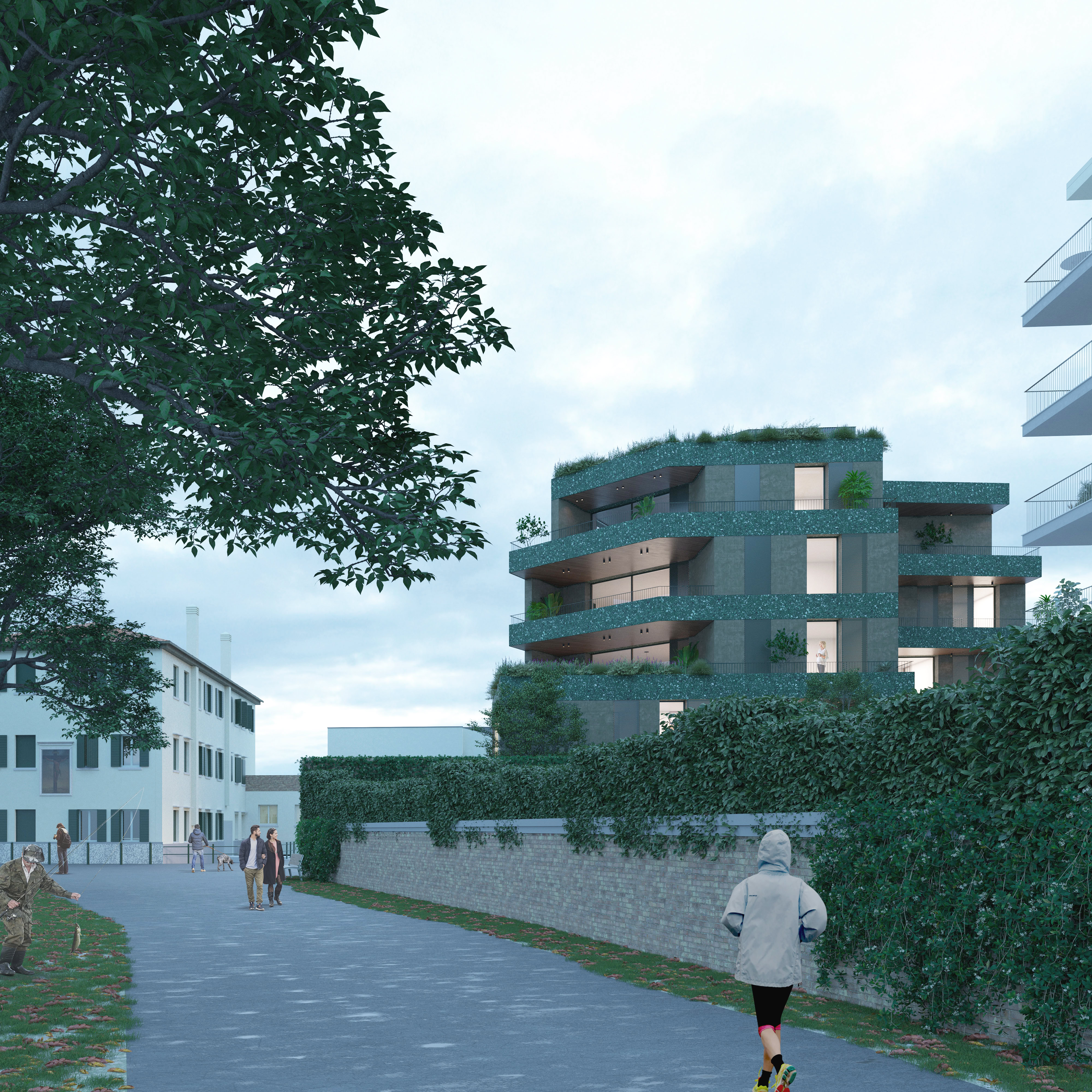The project involves the construction of a new residential building in Treviso, located on a green plot along the Sile River. The decision to position the condominium in such a privileged location guided the entire design concept, aiming to enhance the natural surroundings and create architecture in balanced dialogue with the landscape.