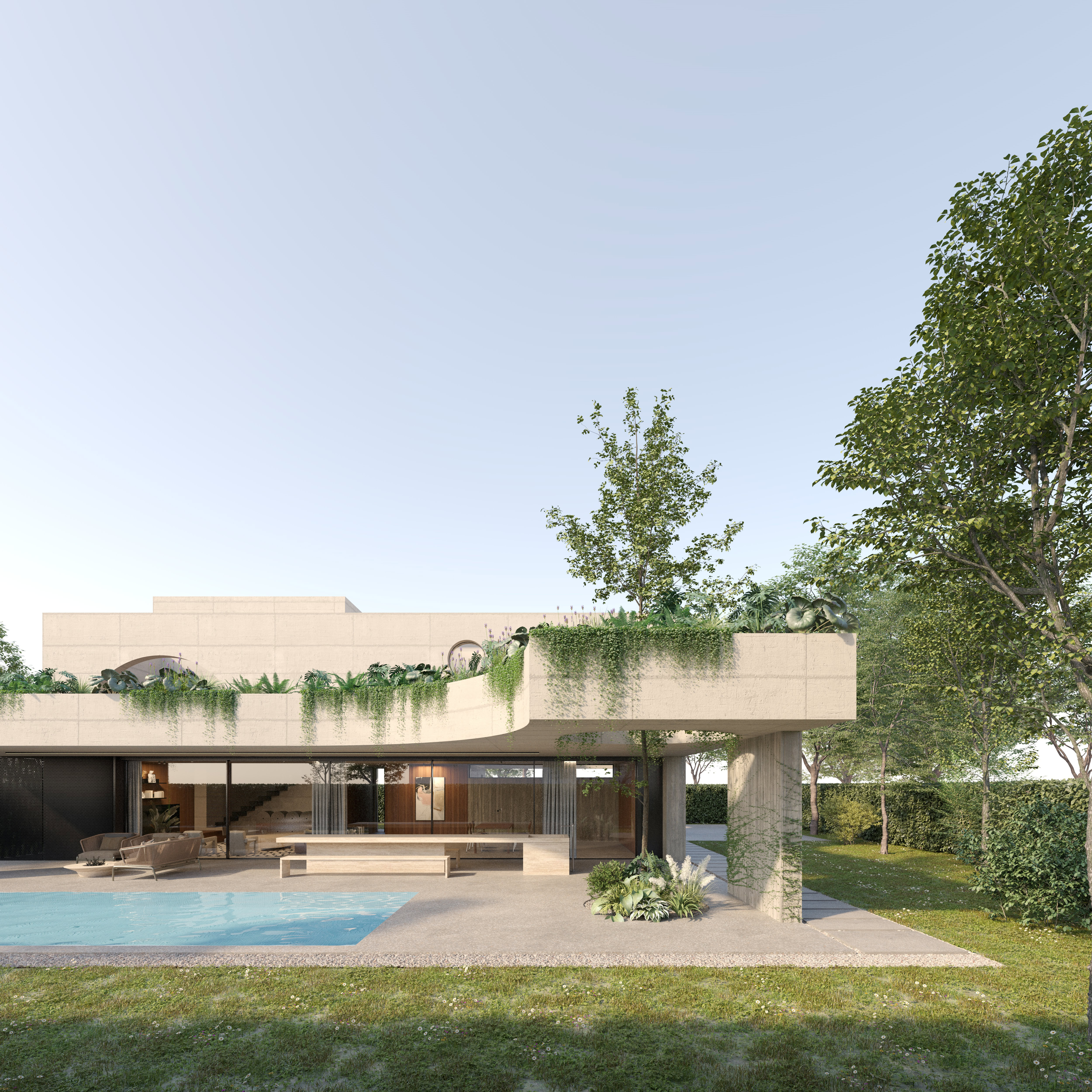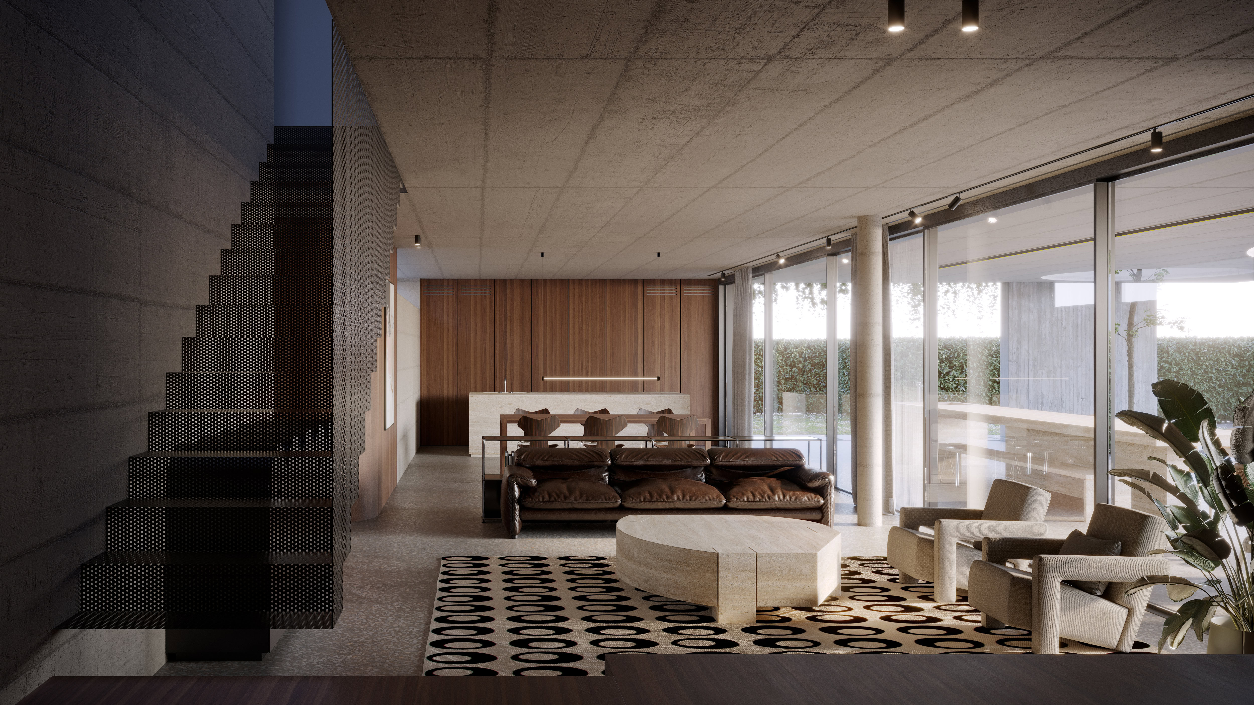 The result is a residence that combines materiality, iconic design, and openness to the outdoors, offering privacy, comfort, and refined elegance in every space. A contemporary home that interprets the language of concrete and design, transforming the residence into a luminous, harmonious, and elegant retreat.